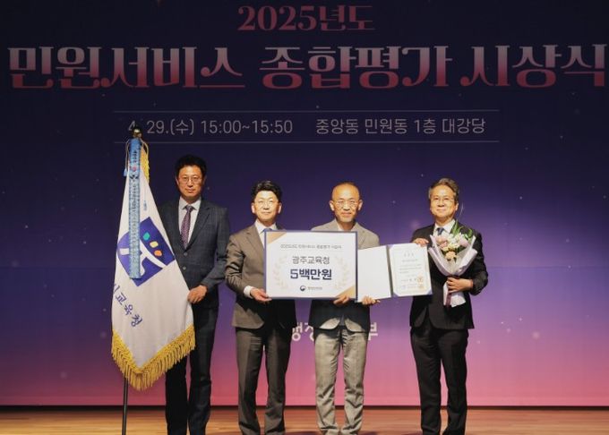 [경남도민뉴스=최현인 기자] 광주시교육청이 행정안전부에서 시행한 ‘2025년 민원서비스 종합평가’에서 전국 시·도교육청 1위를 달성했다.