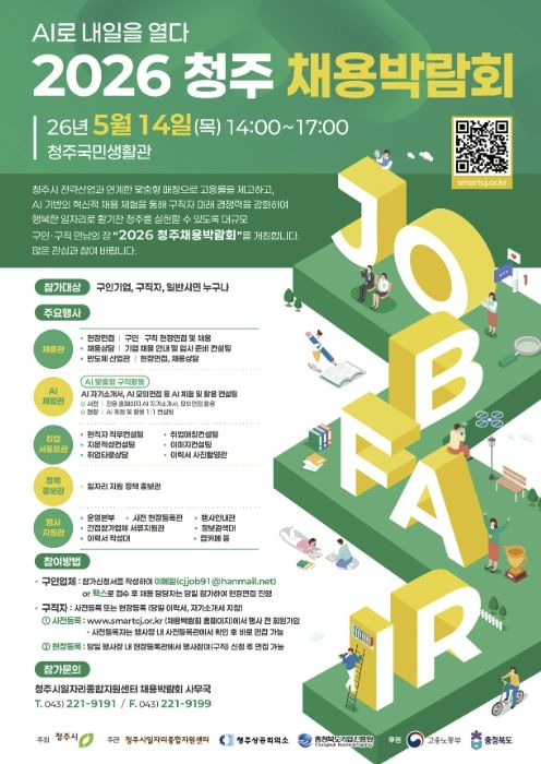 이번 박람회는 청주시가 주최하고 청주시일자리종합지원센터가 주관하며, ‘AI로 내일을 열다’를 슬로건으로 진행된다.