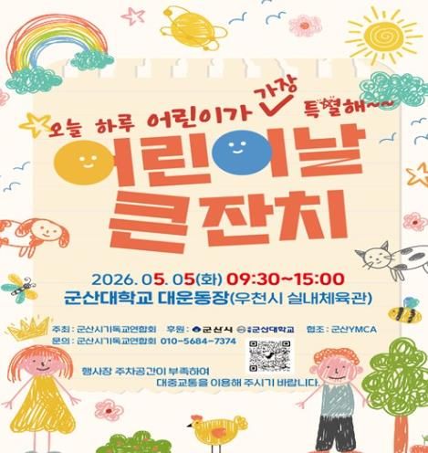 [경남도민뉴스=최인태 기자] 군산시는 5월 5일 어린이날을 맞아 지역 어린이와 가족들을 위한 다채로운 행사를 월명실내체육관과 군산대학교에서 동시에 개최한다.