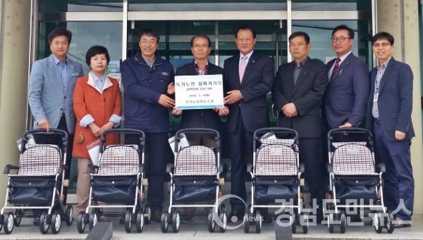 (함양/최병일) = 안의농협(조합장 이상인)은 8일 오전 9시 안의농협사무실에서 제46회 어버이날을 맞아 노인성질환으로 보행이 불편한 관내 독거노인 분들에게 지원될 수 있도록 실버카 5대를 안의면지역사회보장협의체에 기탁했다.