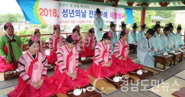 (함양/최병일) = 함양군은 21일 오후 4시 함양향교 명륜당에서 선비문화 성년의 날 기념 전통 성년식을 개최했다.