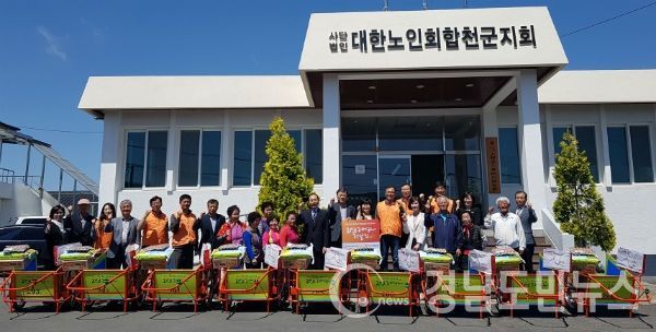 (합천/권연홍 기자) = 경상남도자원봉사센터(센터장 정회숙)와 한화에어로스페이스(주)는 23일 합천군 합천읍에 소재한 (사)대한노인회 합천군지회에서 지역 내 폐지를 모으는 어르신들을 위해 안전하고 가벼운 ‘사랑의 리어카’ 9대를 제작·전달했다.