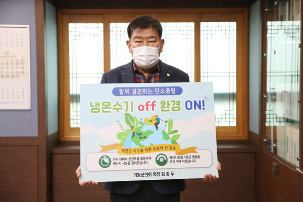 [경남도민뉴스] 거창군의회 김종두 의장은 지난 27일 이상영 진주시의회 의장의 지목으로 ‘생활속 에너지절약 캠페인’에 동참했다고 밝혔다.