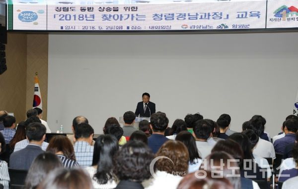 (함양/최병일) = 함양군은 지난 29일 오후 3시 군청 대회의실에서 강현출 함양군수 권한대행을 비롯한 부서장 및 공사·용역·민원 업무담당자 등 300여 명이 참석한 가운데 2018 찾아가는 청렴경남과정 교육을 실시했다.