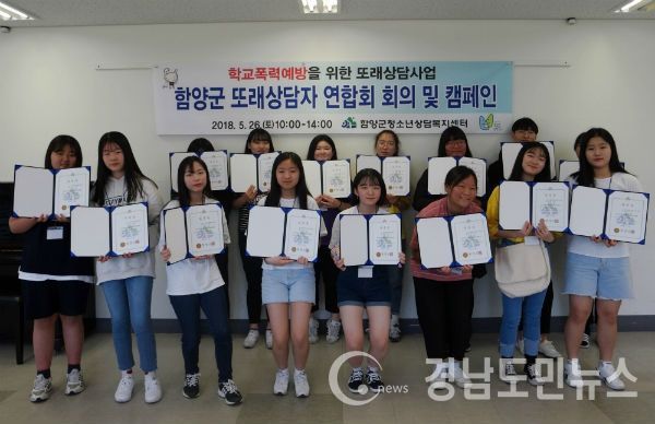 함양군 또래상담자연합회는 조직적이고 체계적인 솔리언 또래상담 연합회 운영을 통해 또래 상담자로서의 소속감과 자긍심을 높이고 청소년 문제를 서로 도우면서 해결하는 분위기를 확산시켜 건전한 또래문화의 조성과 학교폭력 예방활동에 앞장서고 있다.