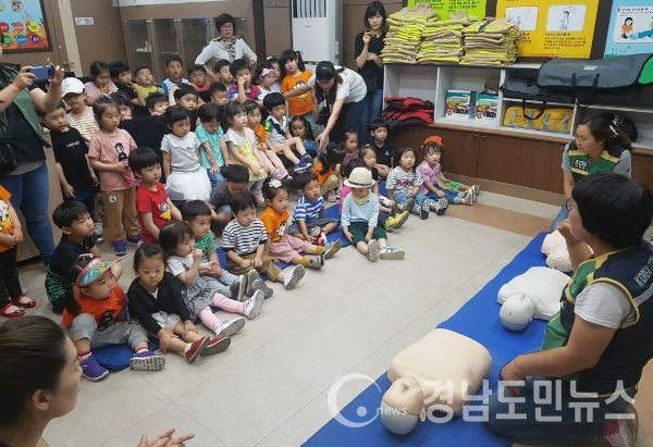 (거창/조현광 기자) = 거창군 가조면은 지난 29일에 가조면 복지회관 3층 가조안전체험관에서 상동어린이집의 어린이 50명을 대상으로 생활안전사고예방과 응급처치 요령, 심폐소생술, 소화기 사용법, 화재 시 대피요령 및 연기비상탈출 방법 등을 직접 체험하는 교육을 실시했다.