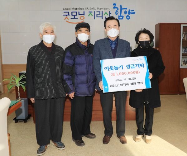 [경남도민뉴스] 함양군 팔각회(회장 노종섭)에서 31일 오전 군청을 찾아 성금 100만원을 기탁하며 이웃사랑을 실천하였다.