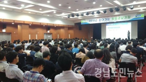(진주/장용수 기자) = 진주시는 지난 30일 오후 3시 시청 2층 시민홀에서 경상남도 감사관실 청렴윤리담당 오종수 사무관을 강사로 초빙하여 부서장, 재·세정, 인허가, 공사, 보조금 담당 공무원 400여 명을 대상으로‘2018년 찾아가는 청렴경남과정 교육’을 실시했다.