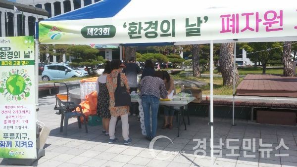 (거창/조현광 기자) = 거창군은 제23회 환경의 날(6.5.)을 기념해 1일 군청 앞 문화휴식공간에서 폐자원 교환 이벤트를 가졌다.