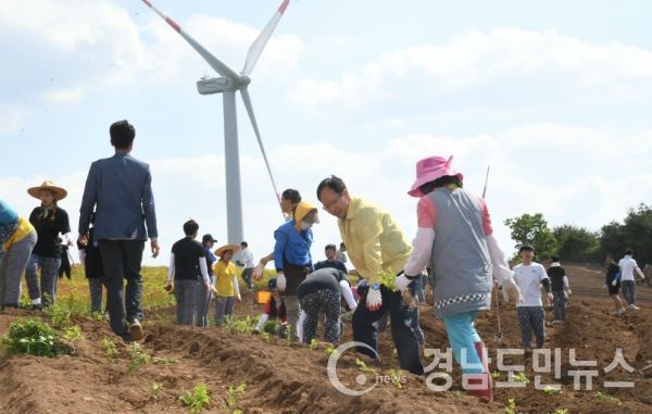 본 행사에는 이광옥 부군수를 비롯한 관계자와 지역주민, 계명대학교 체육학과 농활 학생 등이 참여한 가운데 소국, 아스타, 가든멈 등 감국 묘종 10만 본을 식재했다.