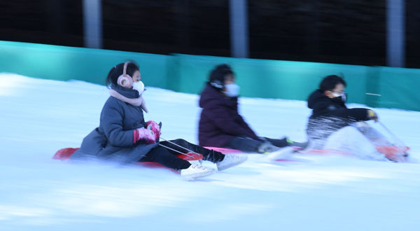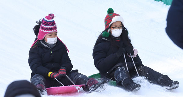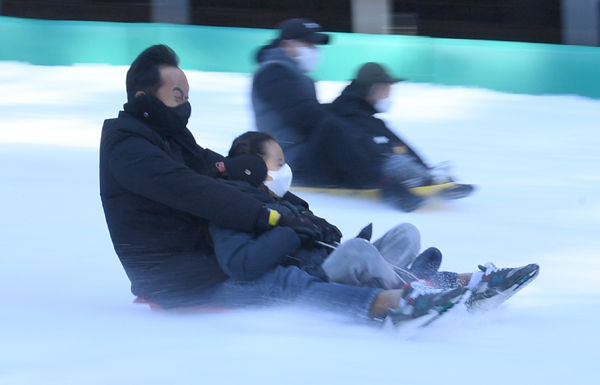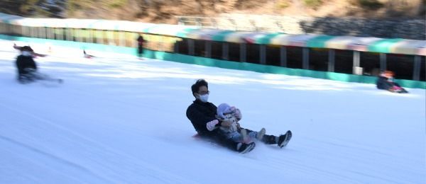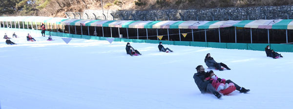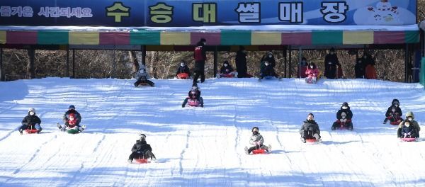 [경남도민뉴스] 절기상 1년 중 가장 추운 소한을 하루 앞둔 4일 경남 거창군 위천면 수승대 눈썰매장에서 어린이들이 엄마 아빠와 함께 신나게 눈썰매를 타고 있다