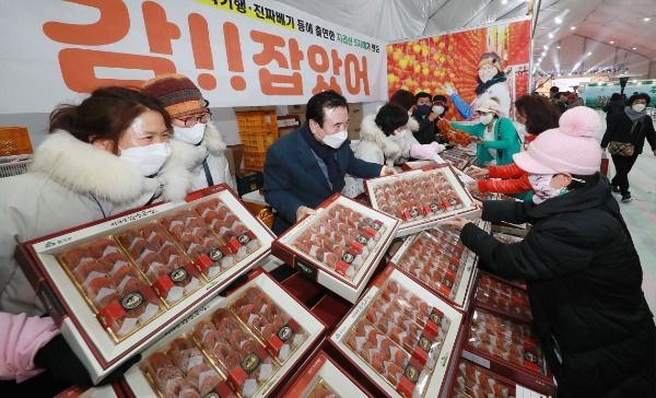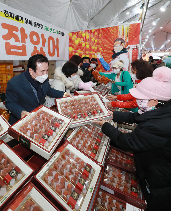 함양군은 코로나19의 장기화로 어려움을 겪는 곶감 생산농가의 판로확보와 지역경제 활성화를 위하여 1월 7일부터 9일까지 상림공원 일원에서 특판행사를 진행하였다.