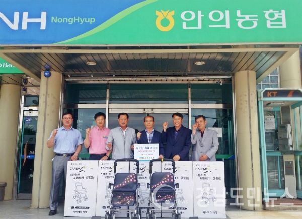 (함양/최병일) = 함양군 안의농협(조합장 이상인)은 지난 20일 오전 11시 안의농협사무실에서 노인성질환으로 보행이 불편한 어르신과 독거노인 분들을 위하여 실버카 12대를 지역사회보장협의체(안의면7대·서하면2대·서상면3대)에 기탁했다.