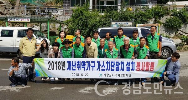 (거창/조현광 기자) = 거창군 지역자율방재단(단장 이현우)은 22일 거창읍 당동마을에서 독거노인 등 화재취약가구 40가구를 대상으로 화재예방을 위한 가스안전차단기 설치 봉사활동을 펼쳤다.