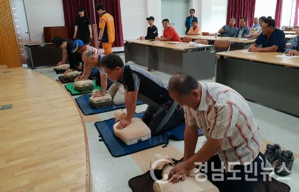 물놀이 관리지역 배치에 앞서 지난 22일 물놀이 안전관리요원의 전문성 함양을 위해 합천소방서 구조구급담당의 협조를 얻어 물놀이 안전사고예방 홍보, 심폐소생술 교육, 수난구조장비사용, 물놀이 안전사고 시 대처요령 등 안전사고 대응능력을 강화하는 교육을 실시했다.