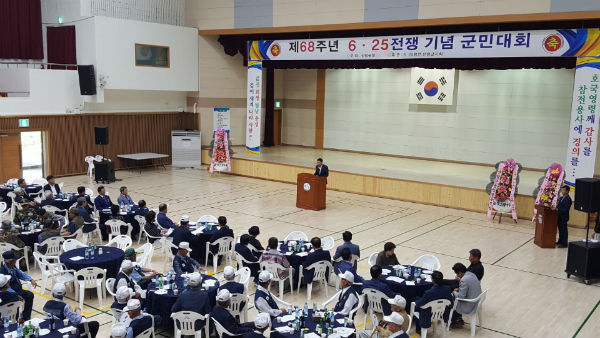(산청/최광용 기자) = 6.25전쟁 68주년 기념일 행사가 25일 산청군 실내체육관에서 참전유공자, 보훈가족, 유관 사회・기관단체장 등 400여 명이 참석한 가운데 열렸다.