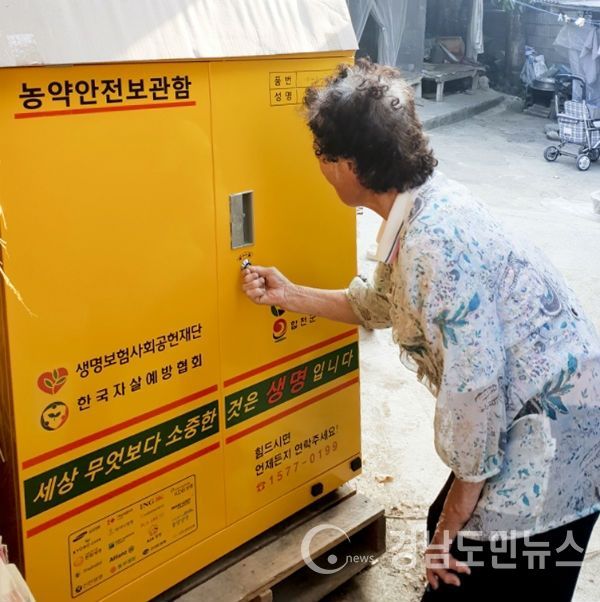 농약안전보관함은 농약사용 후 농약을 안전하게 보관하여 충동적 위험상황을 극복하기 위하여 자살예방협회와 생명보험사회공헌재단에서 공모사업으로 신청을 받아 선정하여 지원하고 있으며, 올해 1월 공모신청하여 경남도내에서는 합천군과 산청군 2개 지역이 선정됐다.