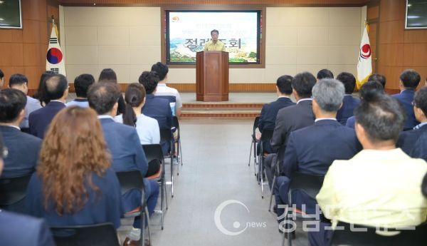(합천/권연홍 기자) = 합천군(군수 문준희)은 3일 군청 대회의실에서 본청직원 및 읍·면장 등 250여 명의 공직자가 참석한 가운데 민선7기 첫 직원 정례조회를 개최했다.