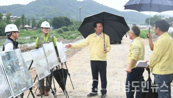 또한, 여름철 자연재난에 대비해 대형공사현장인 정장지구 자연재해위험개선지구 정비사업, 거창 위천 고향의 강 조성사업 등 5개소를 방문해 태풍 및 호우대비 사항과 안전관리상태, 배수로 정비 및 절개지 관리 등에 대해 면밀히 점검했다.