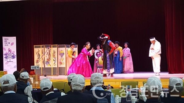 합천문화예술봉사단 공연은 기존의 ‘춘향전’을 마을 어르신들의 개인별 성향에 맞게 현대판으로 각색하여 70~80대 어르신이 기생으로 출연하여 관객들께 웃음과 감동을 선사하는 프로그램으로 구성했으며, 우리춤소리연구회는 전통 장고춤과 장단으로 민요메들리를 부르고 국악의 세계화와 대중화를 위해 색소폰 반주에 맞춰 전통춤을 추는 무대를 선보인다.