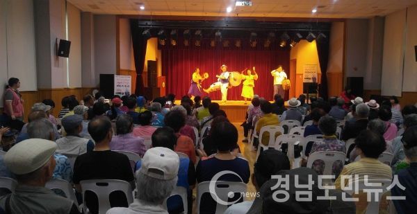 이날 공연은 거창군 삶의 쉼터 강당에서 개최돼 많은 어르신들이 쉽게 볼 수 있었다. 신나고 재미있는 공연으로 모처럼 많은 어르신들이 친구들과 함께 노래하고 박수치면서 즐거운 시간을 보냈다.