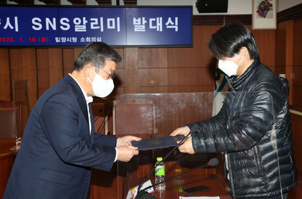 [경남도민뉴스] 밀양시는 지난 18일 2022년 밀양시 SNS알리미 발대식을 개최하고 위촉장을 수여했다고 밝혔다.