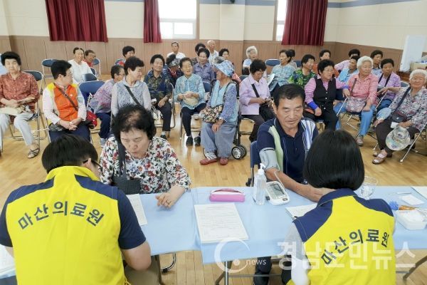 “찾아가는 마산의료원 검진사업”이란 경상남도와 마산의료원이 농어촌지역의 건강형평성 강화를 위해 진행하는 사업으로 안과, 이비인후과, 비뇨기과 3과목을 무료로 순회 진료하는 것이다. 경상대학교병원 전문 의료진이 의료장비 14종을 장착한 대형검진버스를 이용해 진료를 한다.