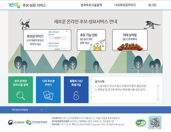 또 구룡공설공원묘지 연고자 760여명을 대상으로 온라인 추모서비스(https://sky.15774129.go.kr) 안내와 성묘 자제 및 방역수칙 준수(마스크 착용, 취식금지, 유증상자 출입금지, 최소인원 성묘 등) 안내문자를 발송하여 관내 코로나19 확산 방지 및 예방에 만전을 기하고 있다.