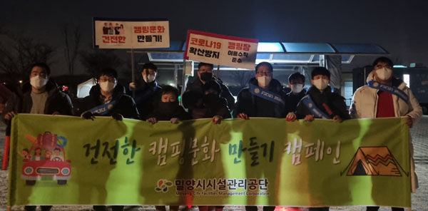 [경남도민뉴스] 밀양시시설관리공단(이사장 이병희)은 21일 밀양시 하남읍 명례리에 위치한 밀양아리랑오토캠핑장에서 캠핑장 이용객 대상으로 ‘건전한 캠핑문화 만들기 2차’ 캠페인을 진행했다고 전했다.