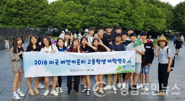 (합천/권연홍 기자) = 합천군(군수 문준희)은 국제 자매도시인 미국 버겐카운티와의 청소년 교류사업 일환으로 관내 고등학생 18명이 참여한 가운데 “미국 어학연수 프로그램”을 진행하고 있다고 25일 밝혔다.