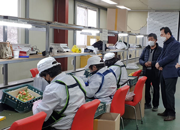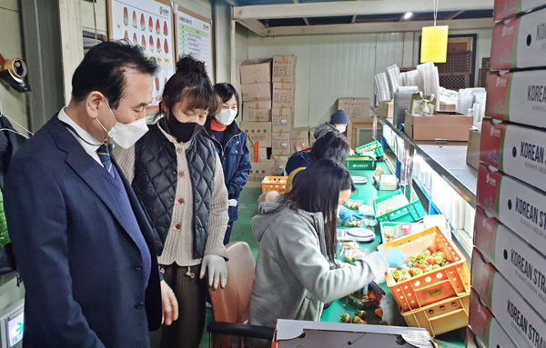 이에 지난 21일과 25일 서춘수 함양군수도 관내 수출농업단지를 방문해 딸기 선별 현장을 둘러보며 현장 애로사항을 청취하고 관계자를 격려하였다.