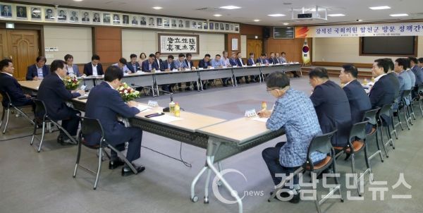 (합천/권연홍 기자) = 합천군(군수 문준희)은 30일 합천군청 대회의실에서 강석진 지역 국회의원과 실과사업소장, 읍면장등 40여 명이 참석한 가운데 정책간담회를 개최했다.