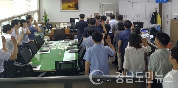 (합천/권연홍 기자) = 합천군(군수 문준희)이 군민들에게 신뢰받는 민원친절 서비스를 제공하기 위한 분위기 조성에 나섰다. 군은 부서별로 공무원 친절 실천강령 결의문을 낭독하고 민원응대, 전화응대요령 교육 및 친절서비스를 다짐하는 결의대회를 실시했다.