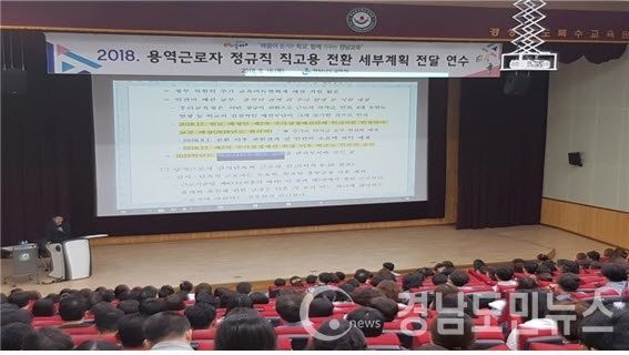 도교육청은 원활한 정규직 전환 시행을 위해 지난 8월 4회에 걸쳐 소속 전 기관 및 학교 업무담당자를 대상으로 관련 연수를 실시했고, 별도로 담당부서 내 ‘용역근로자 정규직 전환 도우미’ 3명을 지정해 일선 현장의 전환업무를 지원하고 있다.