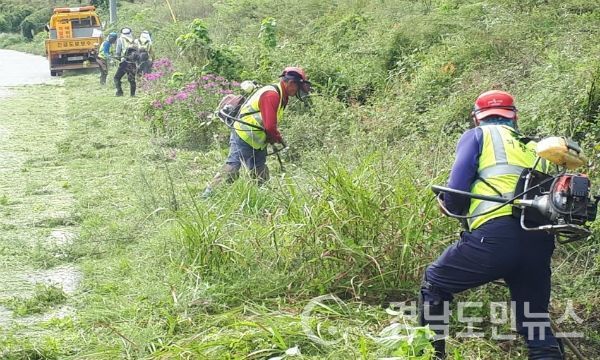 추석맞이 도로정비 작업은 위임국도, 지방도, 군도, 농어촌도로 등 453km에 대해 도로변 풀베기와 도로표지판 및 안전시설 정비, 포트홀 보수, 호우피해지역 복구 등을 한다.