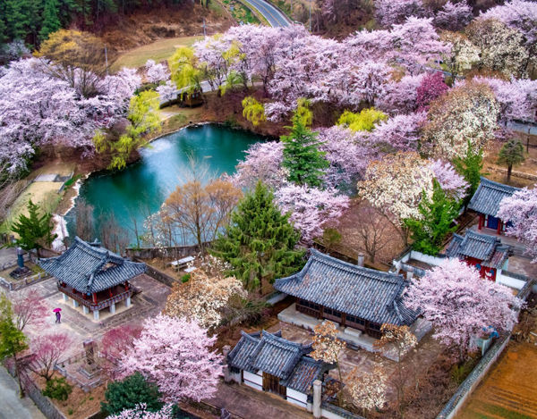 - 덕천서원(거창) = 거창읍 장팔리 골짜기에 위치한 덕천서원은 거창의 벚꽃명소다. 봄이 오면 서원 고택 마당마다 목련이 하얀 수를 놓고, 벚꽃잔치가 벌어진다. 호수를 끼고 천천히 산책하며 둘러보면 벚꽃에 둘러싸인 서원이 마치 한 폭의 그림같이 호수에 비친다. 봄날의 덕천서원에서는 어디서나 인생사진을 얻을 수 있다.