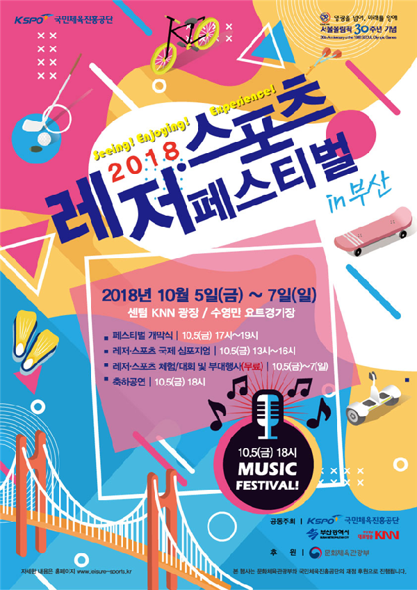 기타 자세한 사항은 ‘2018 레저·스포츠 페스티벌’ 홈페이지에서 확인할 수 있다.