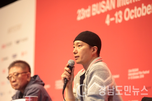 (부산/최록곤 기자) = 5일 부산 해운대구 신세계백화점 센텀시티점 문화홀에서 제23회 부산국제영화제(BIFF) '군산: 거위를 노래하다' 기자회견이 열렸다.