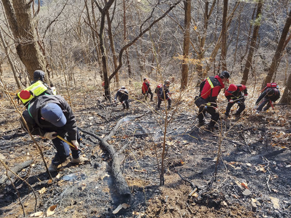 산림과 직원들과 산불진화대원들은 28일부터 불이 마을로 번지는 것을 막기 위해 즉시 마을 주변 방화선을 구축하는 등 시설물을 보호하고 30kg이 넘는 물짐을 지고 올라 연기가 피어오르는 현장을 뛰어다니며 진화작업에 힘썼다.