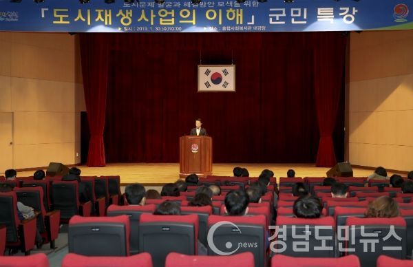 (합천/권연홍 기자) = 합천군은 30일 합천군 종합사회복지회관에서 군민과 공무원 300여 명이 참석한 가운데, ‘도시재생사업의 이해’라는 주제로 특강을 실시했다.