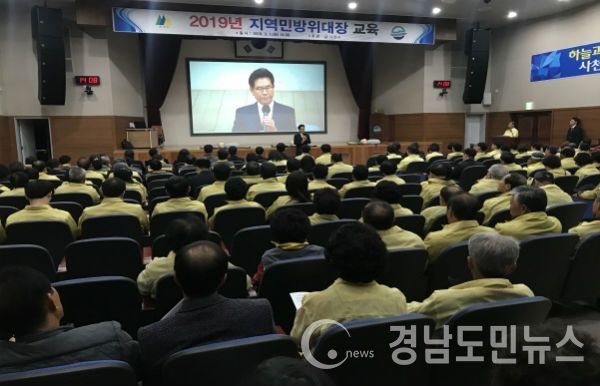 (사천/이형섭 기자) = 사천시(시장 송도근)는 지난 5일 오후 2시부터 대강당에서 지역민방위대장 220여 명을 대상으로 민방위대장 기본임무 및 재난상황에 대한 대처방법 등 2019년 지역민방위대장 교육을 실시했다.