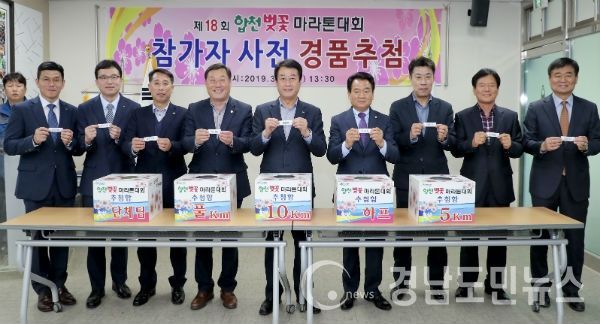 (합천/권연홍 기자) = 합천벚꽃마라톤대회본부(대회장 문준희)는 25일 합천군스포츠센터에서 기관사회단체장과 마라톤대회본부 임원 등 21명이 참석한 가운데 제18회 합천벚꽃마라톤대회 참가자 10,345명을 대상으로 토종돼지 외 3종의 경품 180개를 추첨했다.