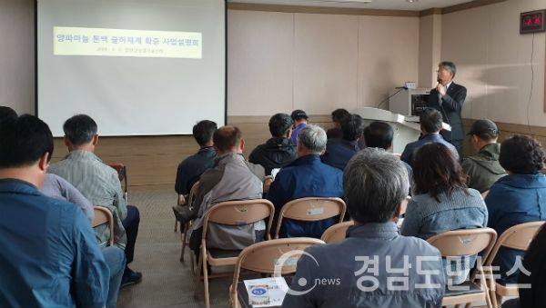 (합천/권연홍 기자) = 합천군(군수 문준희)은 지난 8일 합천군 농업기술센터 제2청사 농기계대여은행 2층 회의실에서 사업대상농가 약 95명이 참석한 가운데 양파·마늘 톤백 출하체계 확충 사업설명회를 개최했다.