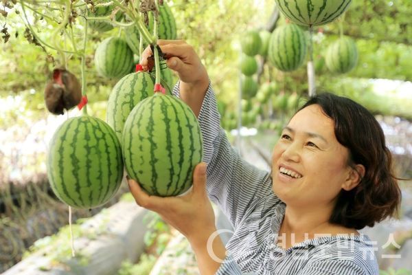 군은 올해 애플수박 재배농가에 모종대와 환기팬 시설 등 9000만 원을 지원해 지역 맞춤형 소득작물을 개발하는데 힘을 보태고 있다.