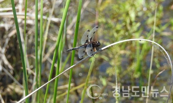 (합천/권연홍 기자) = 합천군 정양늪에서 날개의 흑갈색 반점이 바다거북 대모의 등딱지 무늬를 닮은 대모잠자리가 발견됐다.