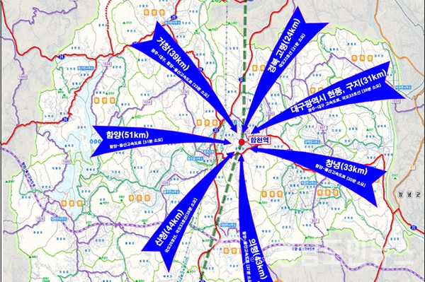 | 합천읍 근교가 합천역사의 위치로써 적합한 장소이나, 합천 북부지역(가야면, 야로면, 해인사 등)을 포함한 합천군 전역의 접근성 확보 또한 중요하다.(사진/합천군) |