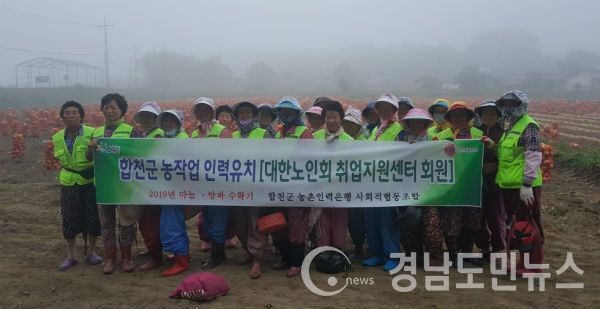 올해 4년차에 접어든 합천군 농촌인력은행은 2016년부터 진주, 하동, 울산, 부산 등의 대한노인회 취업지원센터와 연계하여 필요한 인력을 시간에 맞춰 영농 현장까지 직접 왕복 수송하고 있다.