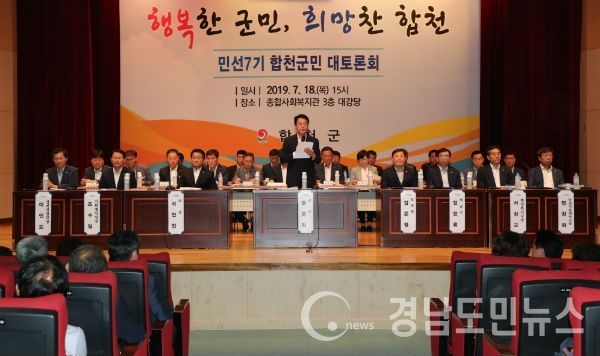(합천/권연홍 기자) = 합천군(군수 문준희)은 18일 종합사회복지관 3층 대강당에서 군민 400여 명이 참석한 가운데 ‘민선7기 합천군민 대토론회’를 개최했다.