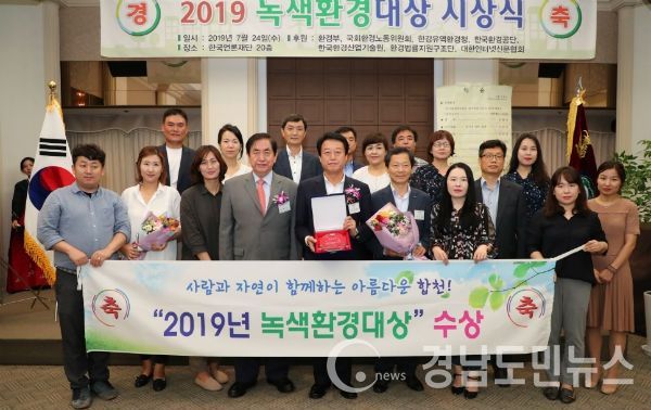 (합천/권연홍 기자) = 합천군(군수 문준희)은 24일 환경법률신문사와 환경방송이 주최하는 「2019년 녹색환경대상」시상식에서 지방자치단체부문 ‘환경대상’을 수상했다.