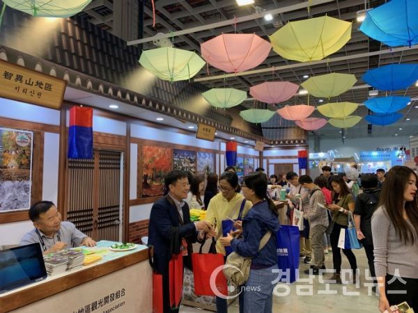(경남도민뉴스) = 함양군이 포함된 지리산권관광개발조합(이하 조합, 본부장 이응호)은 지난 10월 일본 여행시장 공략에 이어 이번에는 대만 관광객을 타깃으로 마케팅에 나섰다. 지난 11월 8일부터 11일까지 대만 타이베이 난강전람관 1층에서 개최된 ‘타이베이국제여전(Taipei International Travel Fair 2019, 이하 박람회)’의 한국관에 참가하여 현지 아웃바운드 여행사와의 세일즈콜 및 부스 내방객들에게 직접적인 홍보활동을 펼쳤다.